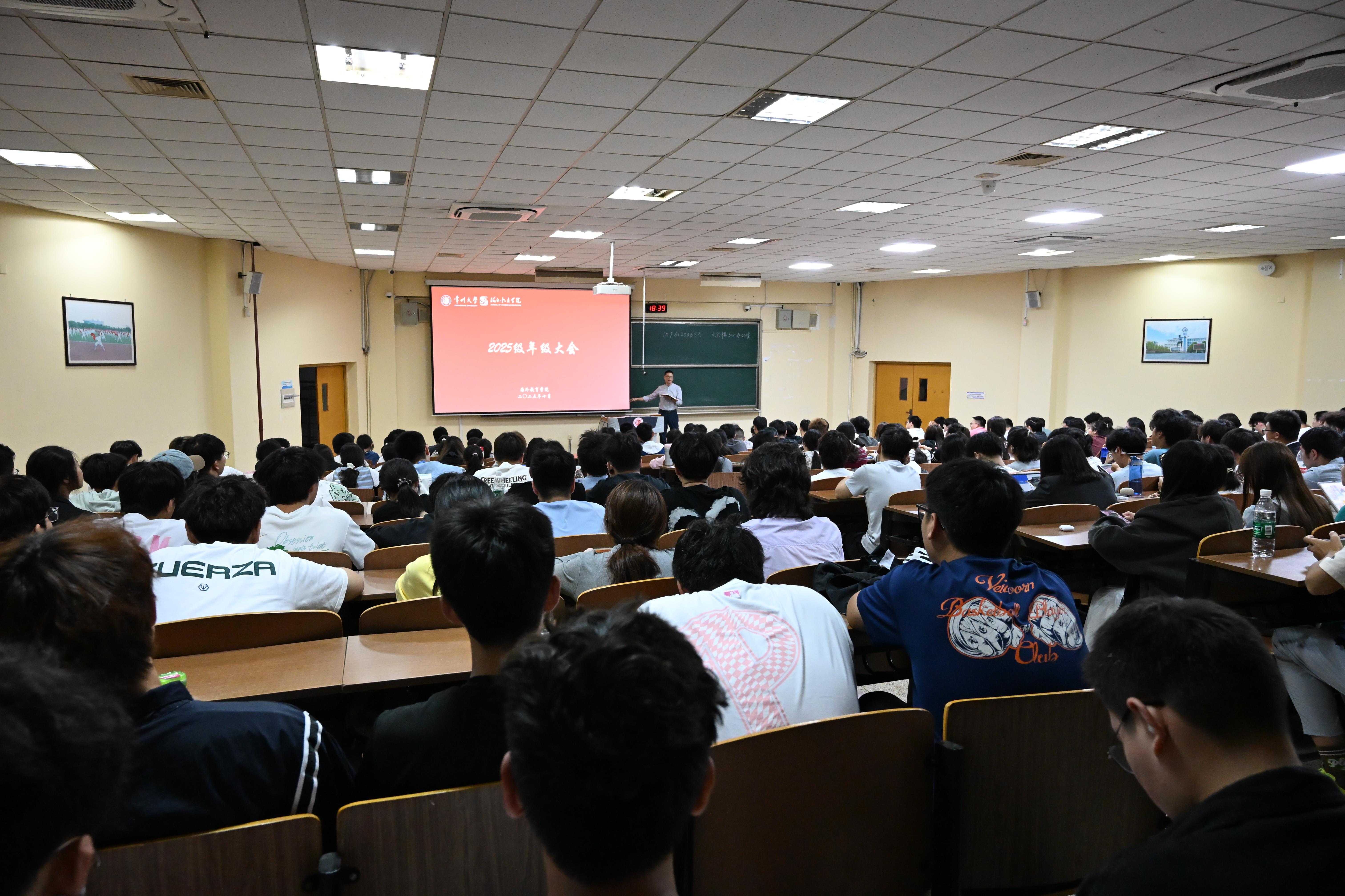 为帮助2025级新生快速适应大学学习生活、明确自身发展方向,10月15日晚,学院在W4阶举行2025级新生入学教育暨年级大会。本次会议由新生辅导员王卫卿主持,全体2025级学生参加。