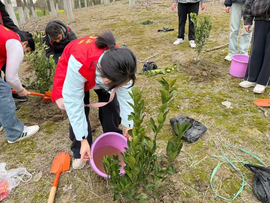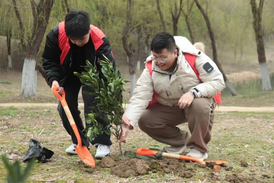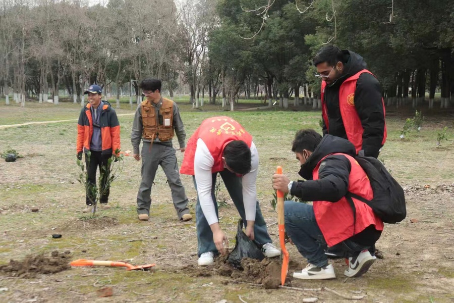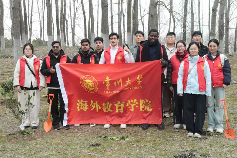 正值全国两会擘画生态文明新蓝图,海外教育学院积极响应政府工作报告“让祖国的天更蓝、山更绿、水更清”的号召,在第48个植树节到来之际,我院中外大学生志愿者队于3月8日在常州新龙生态林开展植树节劳动教育实践活动,用实际行动将两会精神转化为育人实践。